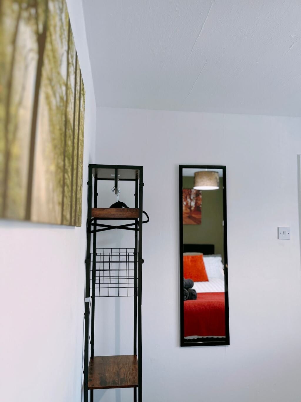 Bedroom 1: Comfy double bed, bedside tables & lamps and clothes hanging rails.