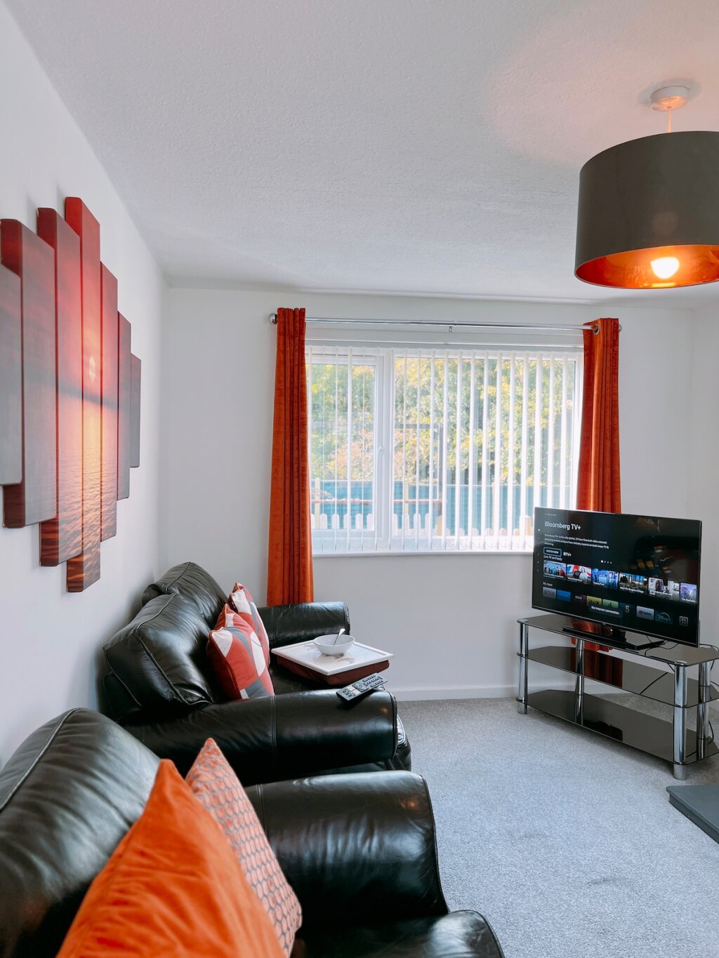 LIVING ROOM: A nice and relaxing space with comfy sofas and a Smart TV so you can stream your favourite shows. Feel free to log in to your own streaming services, just remember to log out when you leave.