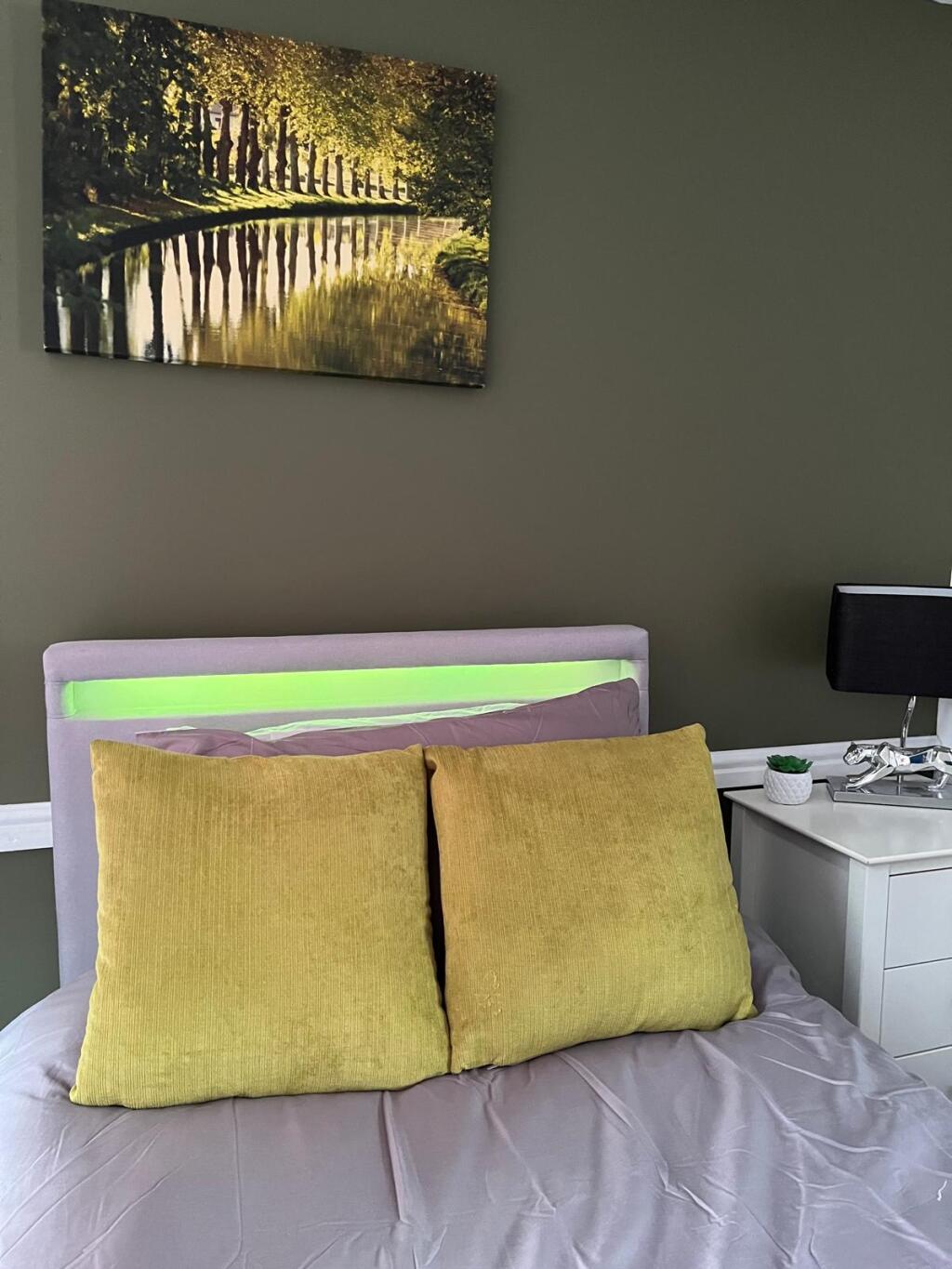 Bedroom 2 is upstairs and offers a comfy double bed, wardrobe and bedside tables.