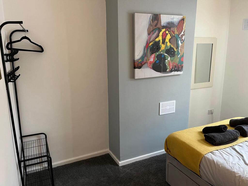 Bedroom 3 is also upstairs and is furnished with a comfy single bed, hanging rail and bedside table.